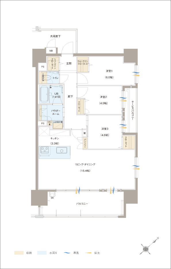 バルコニー面積 /13.20㎡(約3.99坪)サービスバルコニー面積 /3.63㎡(約1.09坪)