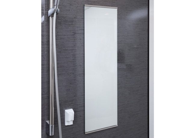 シャワー時などの浴室内の湯気で曇りにくい、コーティング付き。